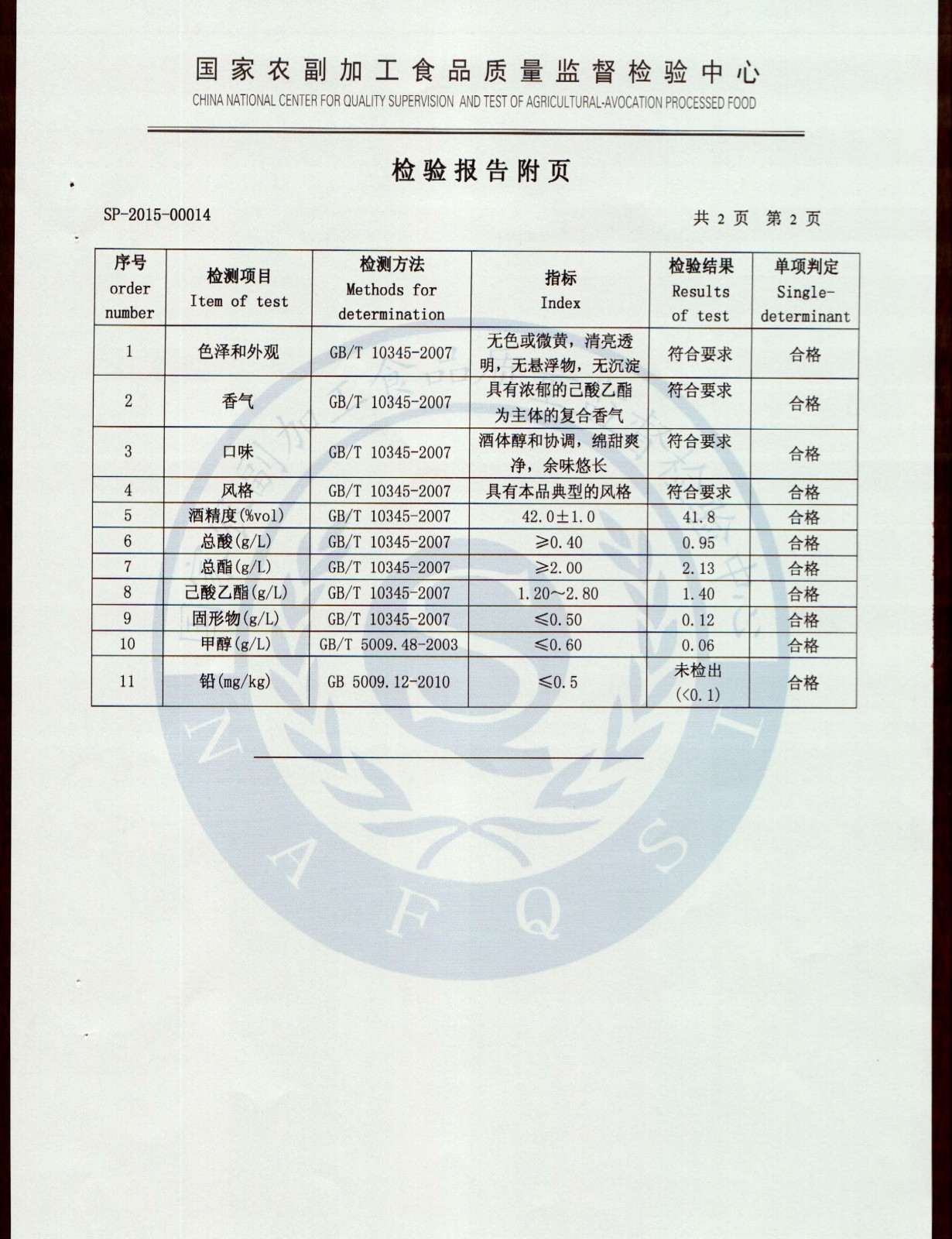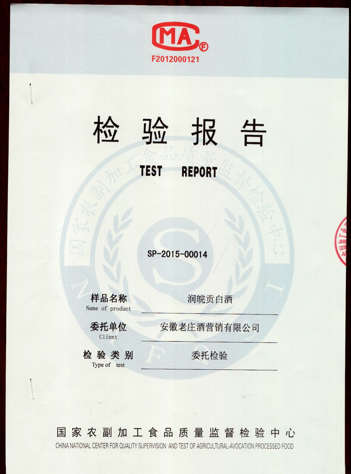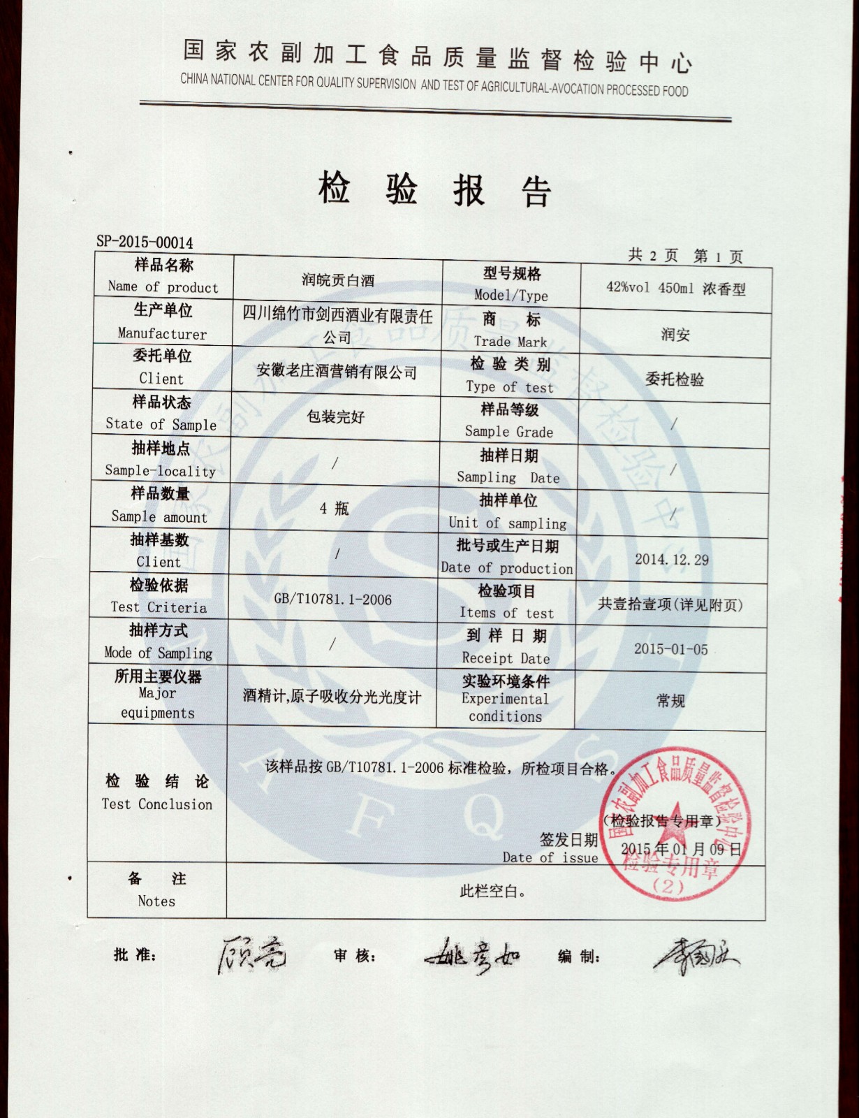 • 润皖贡白酒检验报告